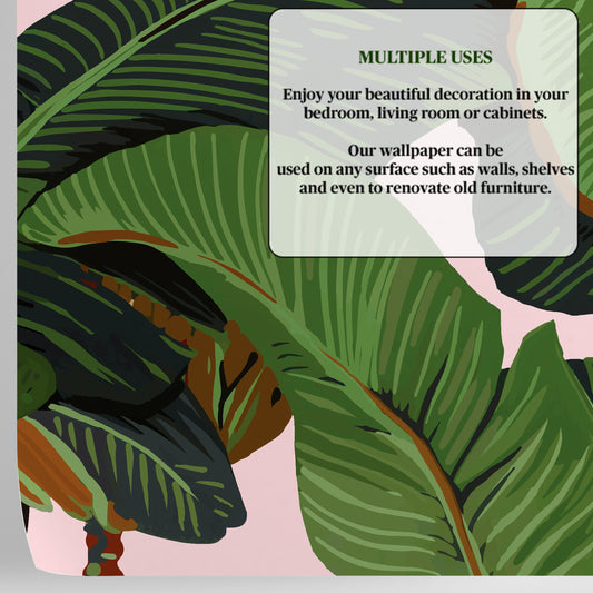 Tropical Pink and Green Banana Leaf Cabinet Liner – Eco-Friendly Decorative Paper for Drawers and Furniture