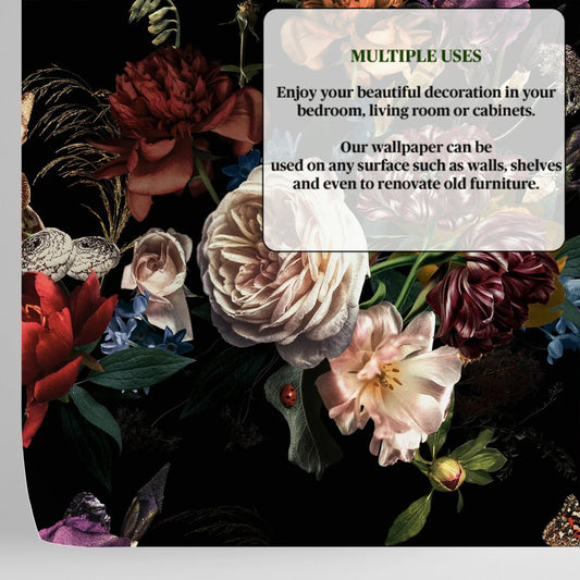 Vintage Botanical Dark Floral Colorful Wallpaper
