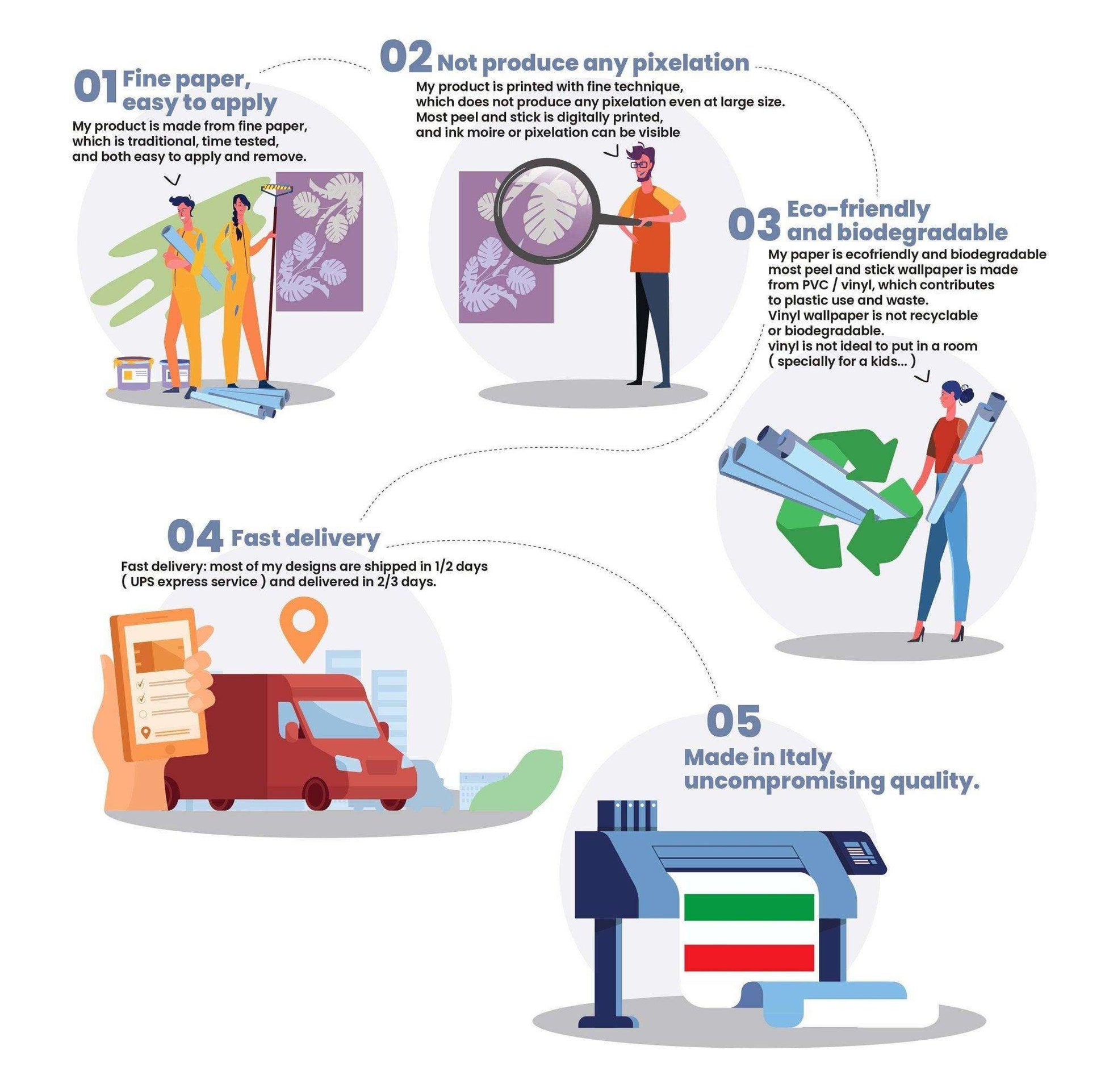 Our wallpapers are incredibly versatile! They adapt perfectly to almost any surface as long as they are clean, dry, and smooth. Wallpapers4Beginners have also considered more demanding situations, such as uneven or damaged surfaces, that should be repaired or shaved to ensure uniform application.