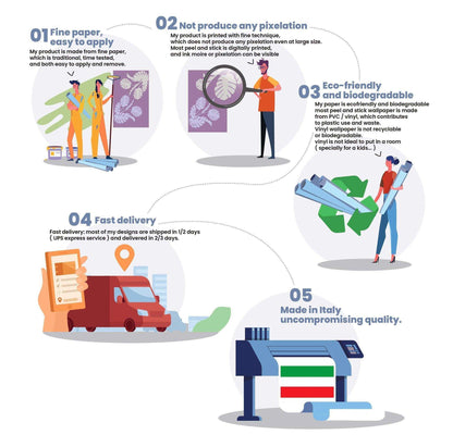 The removal of our wallpapers is just as simple as their application. Wallpapers4Beginners has designed products that can be easily removed with hot water and a sponge without any annoying residues. This feature makes our products ideal for those who want to frequently renew the appearance of their rooms without the fear of damaging the walls.