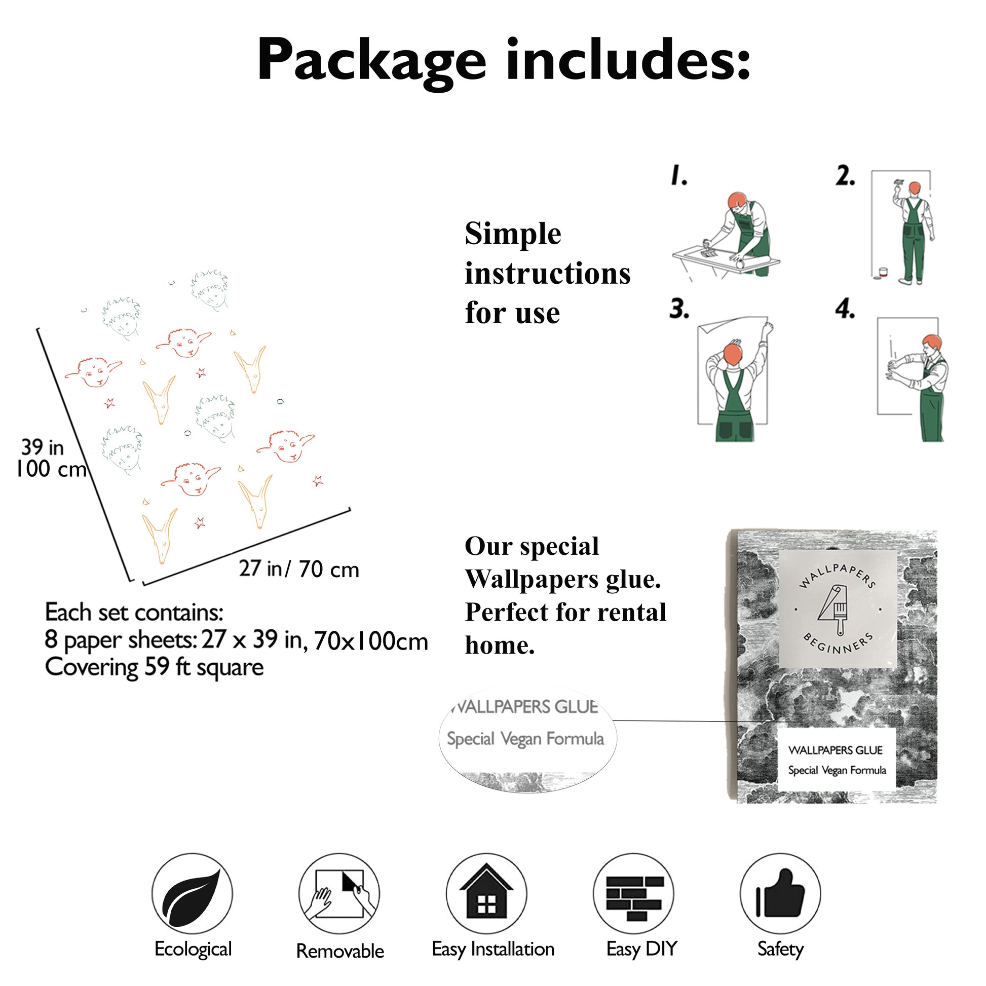 Our wallpapers are incredibly versatile! They adapt perfectly to almost any surface as long as they are clean, dry, and smooth. Wallpapers4Beginners have also considered more demanding situations, such as uneven or damaged surfaces, that should be repaired or shaved to ensure uniform application.