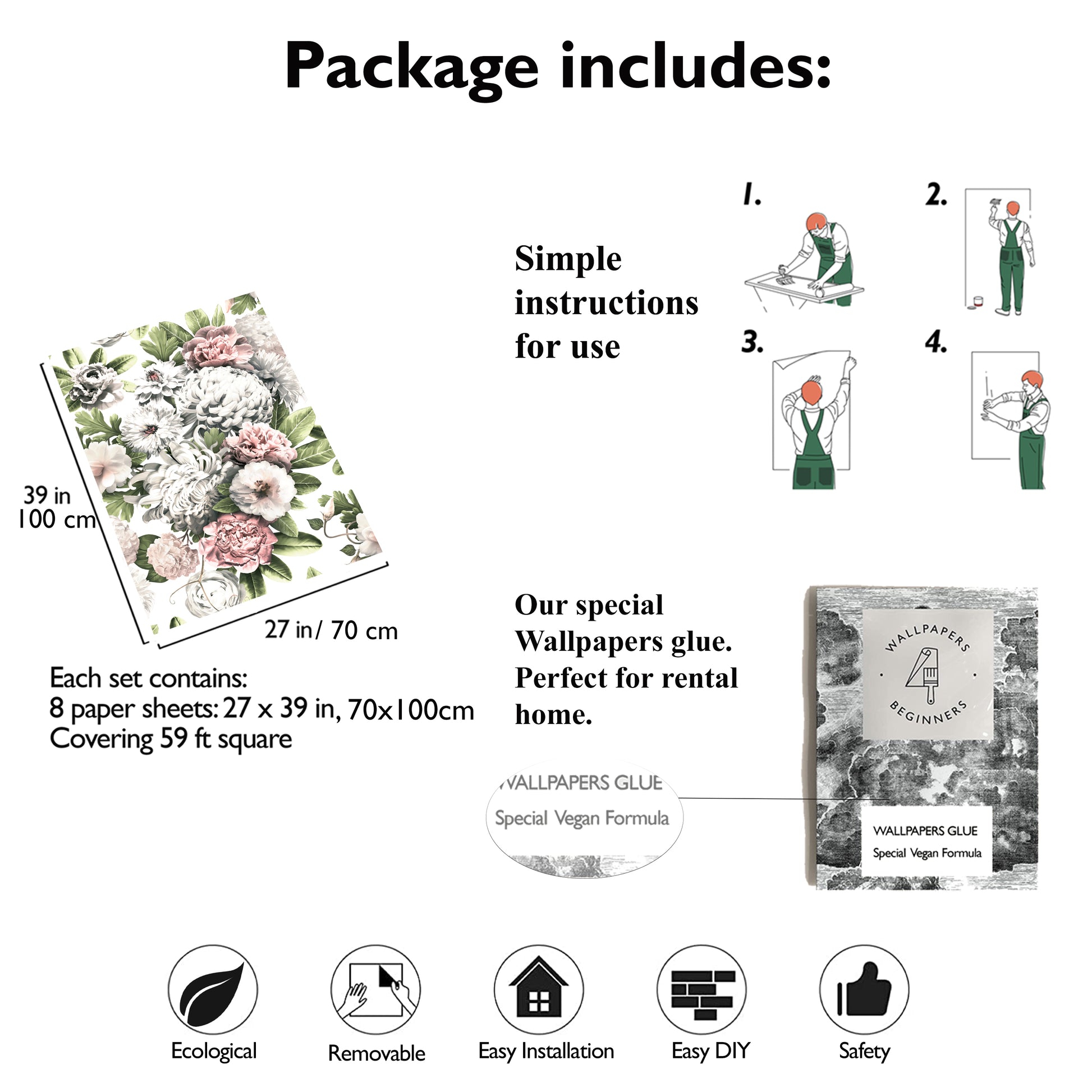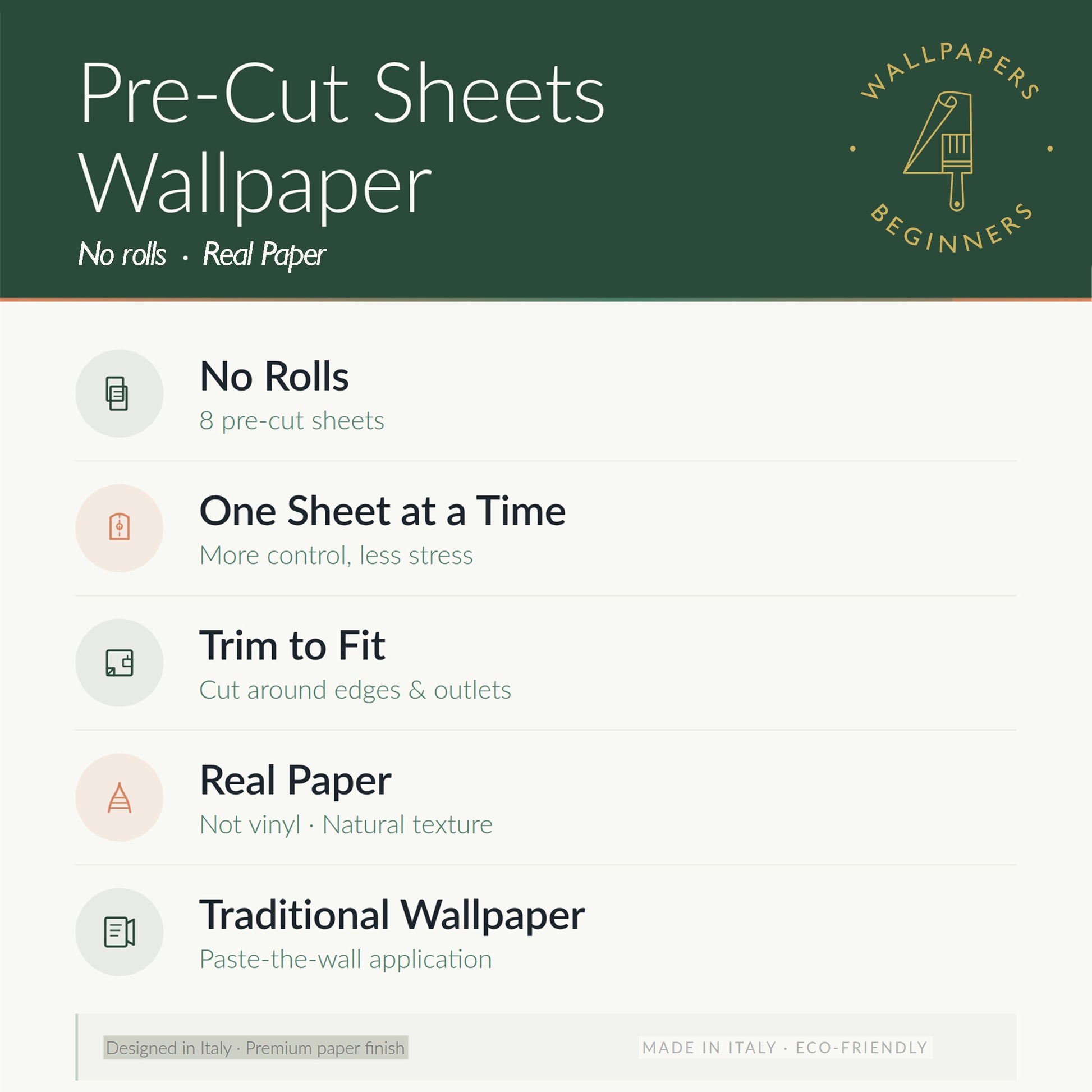 Real paper wallpaper · Glue & brush included · Beginner-friendly installation