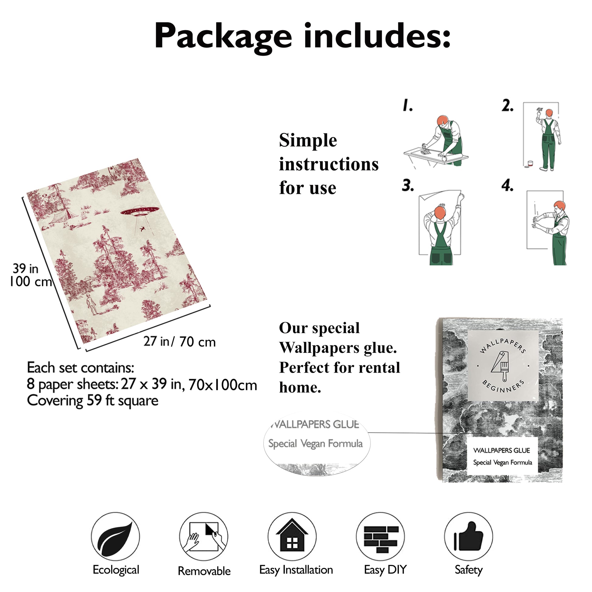 Real paper wallpaper · Glue & brush included · Beginner-friendly installation
