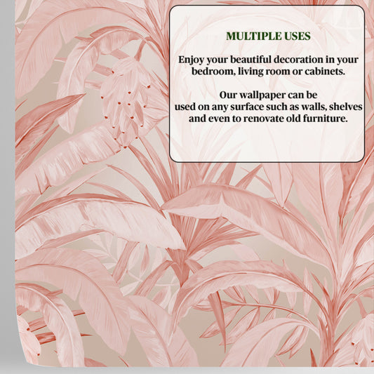 Blush Pink Banana Leaf Cabinet Liner – Eco-Friendly Decorative Paper for Drawers and Furniture