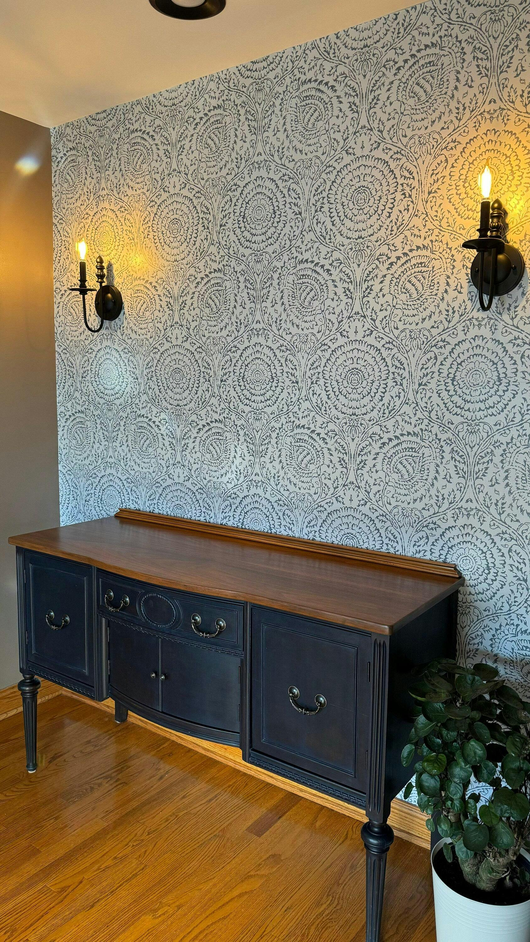 - Cada hoja de papel tapiz contiene el patrón completo para que sean fáciles de combinar.