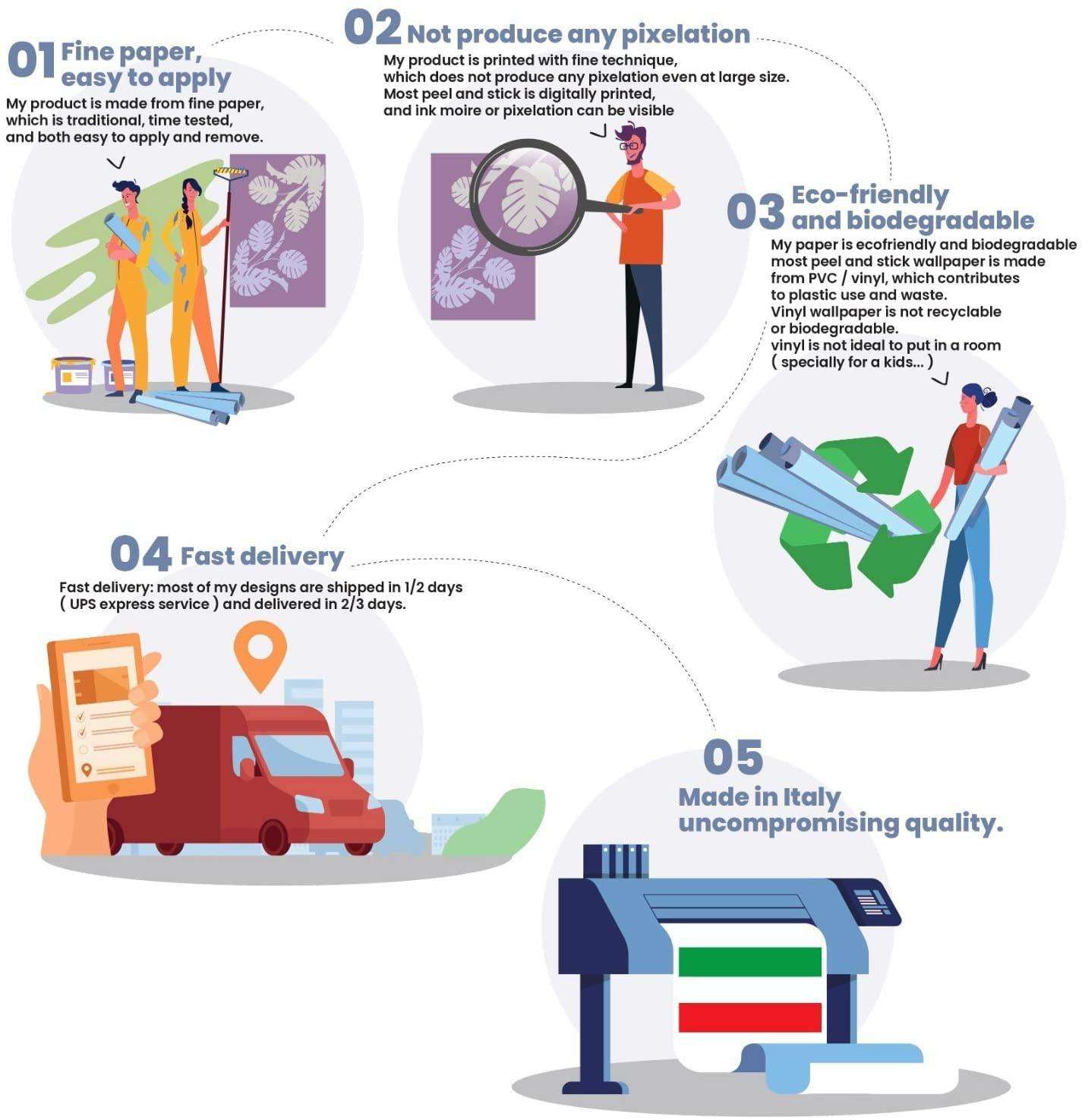 - Chaque feuille de papier peint contient l'ensemble du motif afin qu'ils soient faciles à assortir