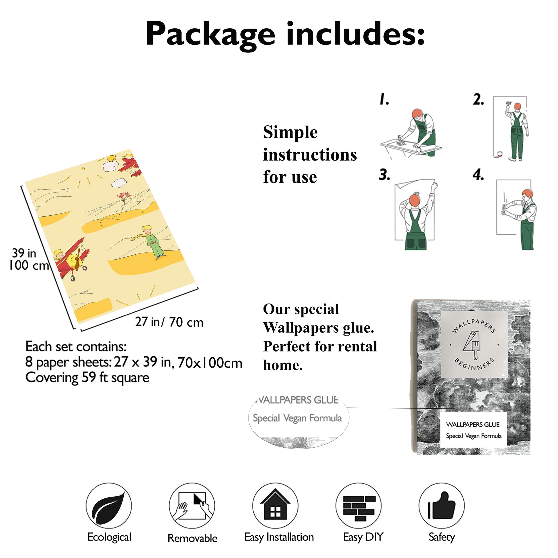 Our wallpapers are incredibly versatile! They adapt perfectly to almost any surface as long as they are clean, dry, and smooth. Wallpapers4Beginners have also considered more demanding situations, such as uneven or damaged surfaces, that should be repaired or shaved to ensure uniform application.