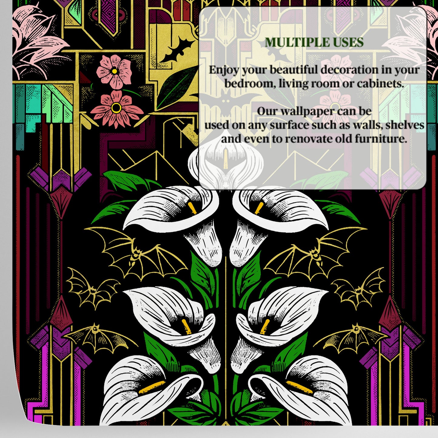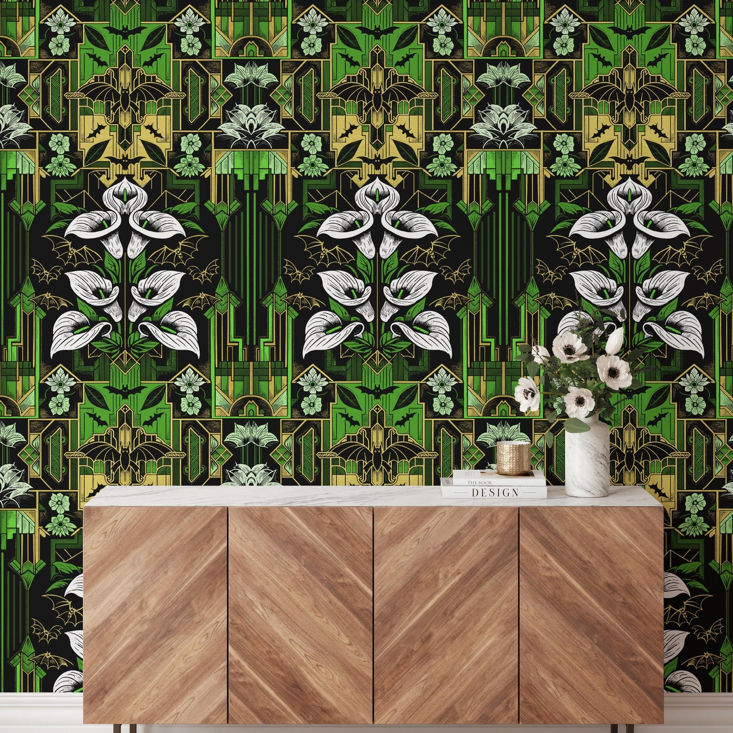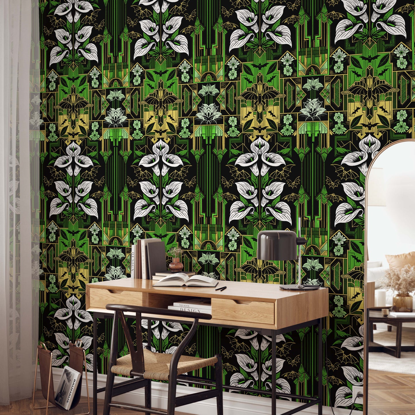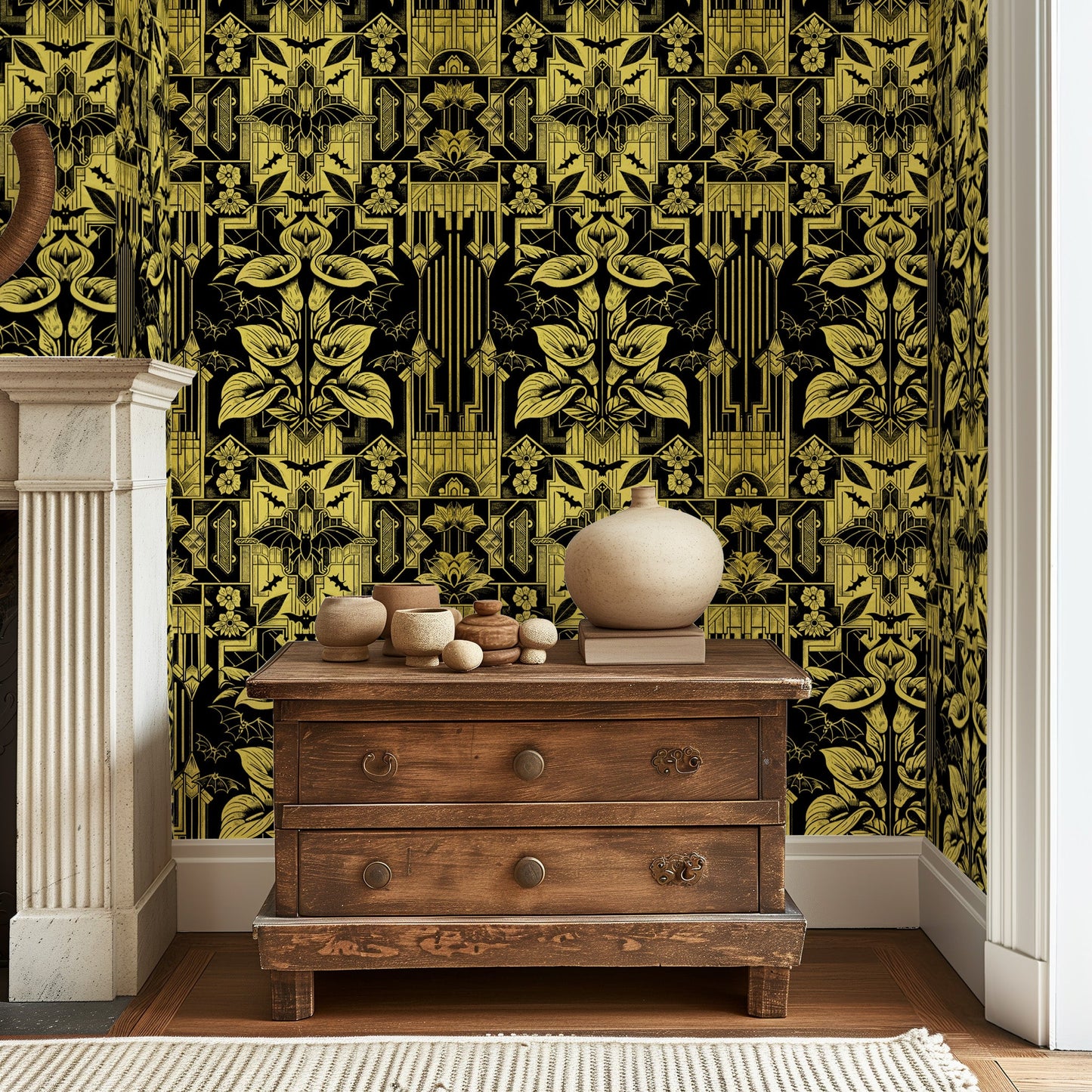 Crafted from high-quality, eco-friendly materials, this wallpaper is not just visually stunning but also easy to apply, making it ideal for both home and commercial spaces. Add a touch of gothic charm and Art Deco sophistication to your environment with this unforgettable wallpaper.