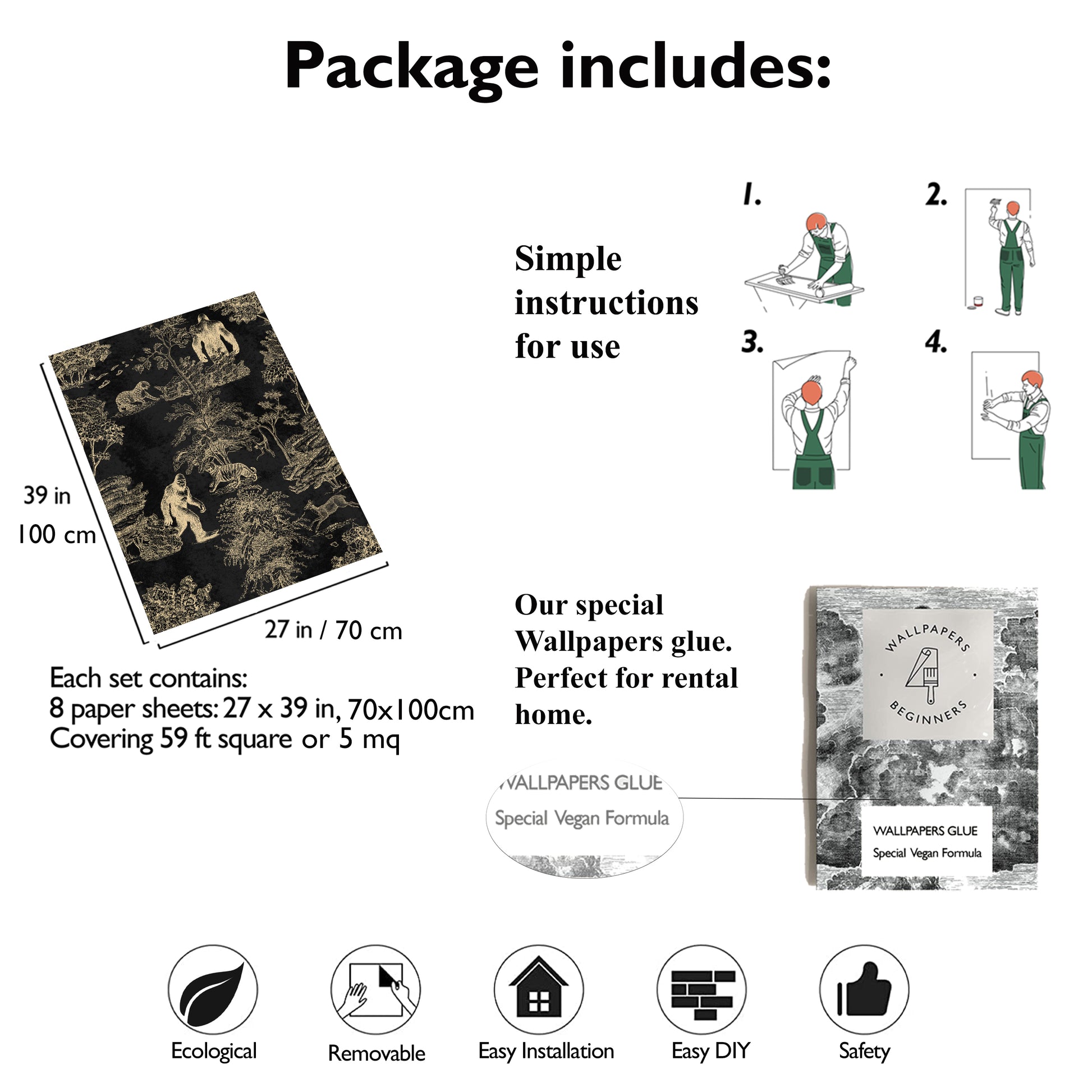 Real paper wallpaper · Glue & brush included · Beginner-friendly installation