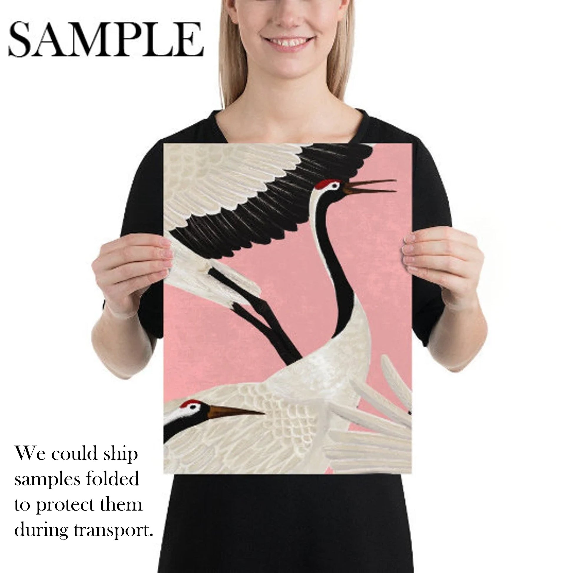 Elevate your interiors with the timeless elegance of the Graceful Cranes in Flight Wallpaper Collection. This stunning design features majestic cranes in dynamic poses, showcasing their graceful wings and striking red-crowned heads. The intricate detailing of their feathers is complemented by a softly textured background, available in six sophisticated color variations: white, grey, black, gold, pink, and green.