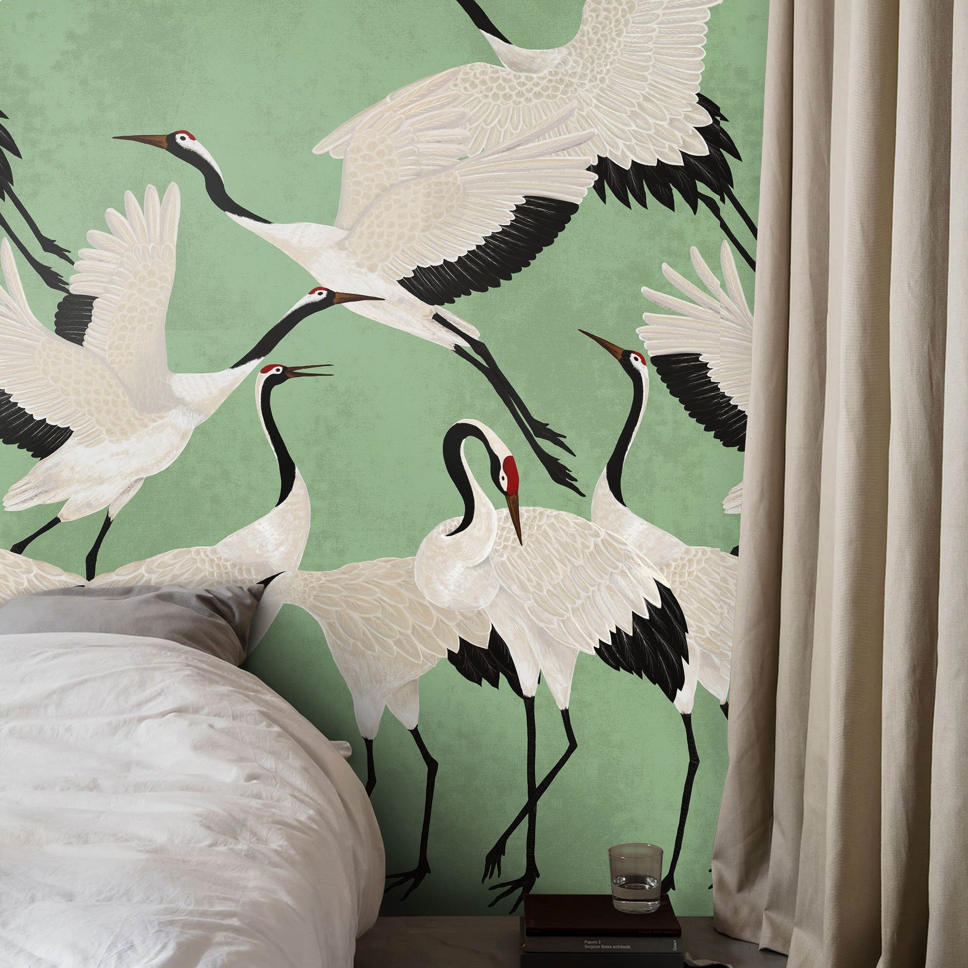 Transform your home into a sanctuary of elegance with our Graceful Cranes in Flight Wallpaper Collection, a perfect blend of art and nature.