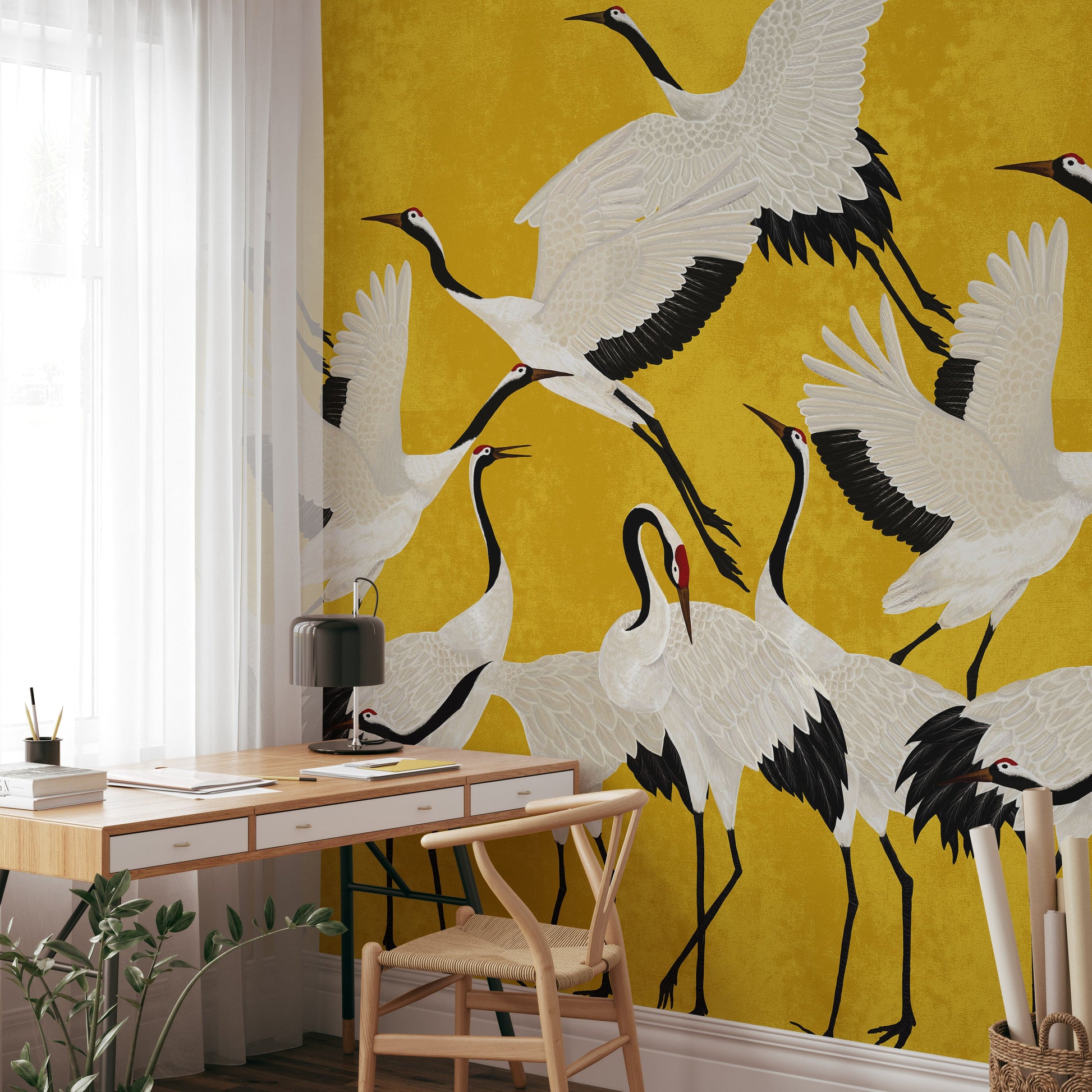 Transform your home into a sanctuary of elegance with our Graceful Cranes in Flight Wallpaper Collection, a perfect blend of art and nature.