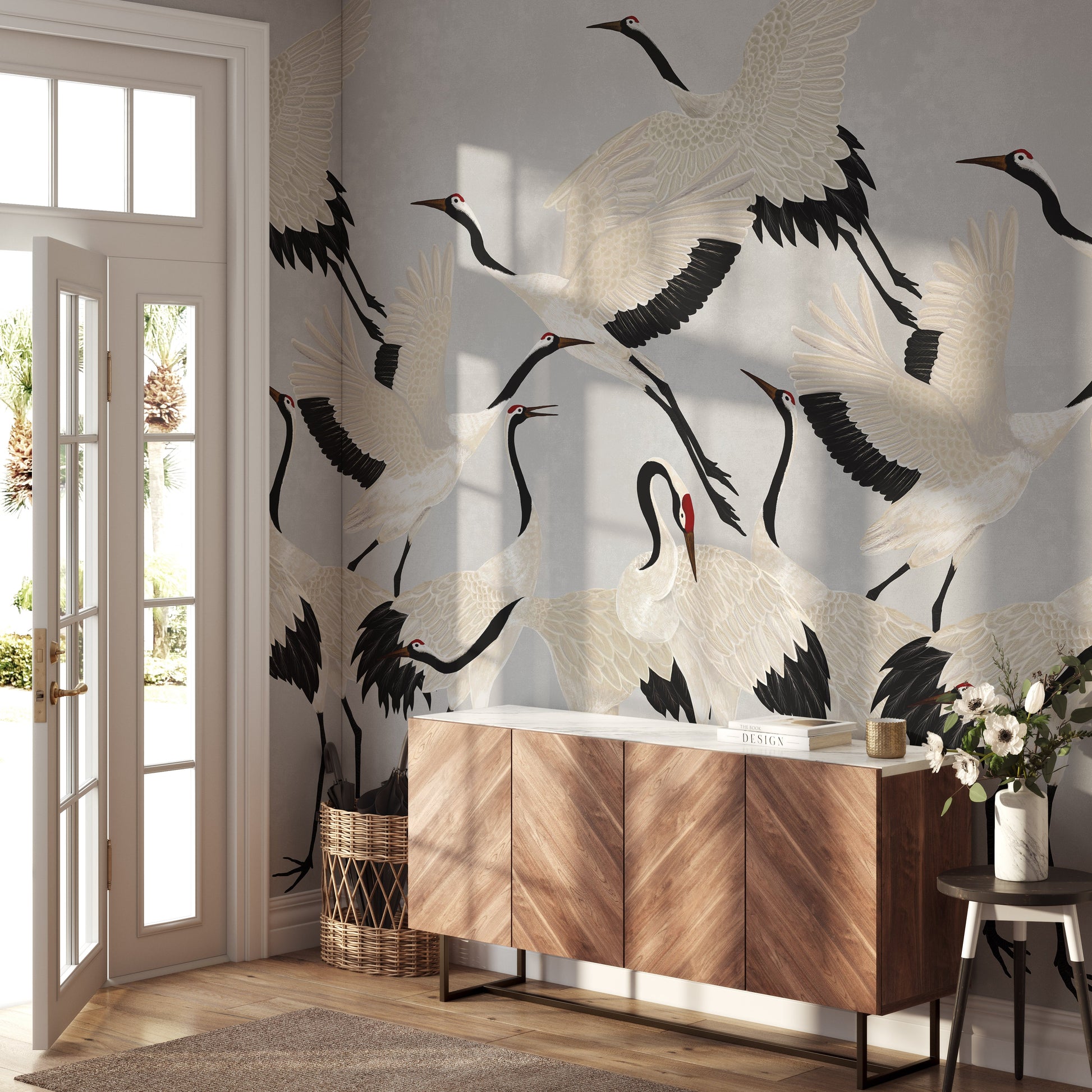 Transform your home into a sanctuary of elegance with our Graceful Cranes in Flight Wallpaper Collection, a perfect blend of art and nature.