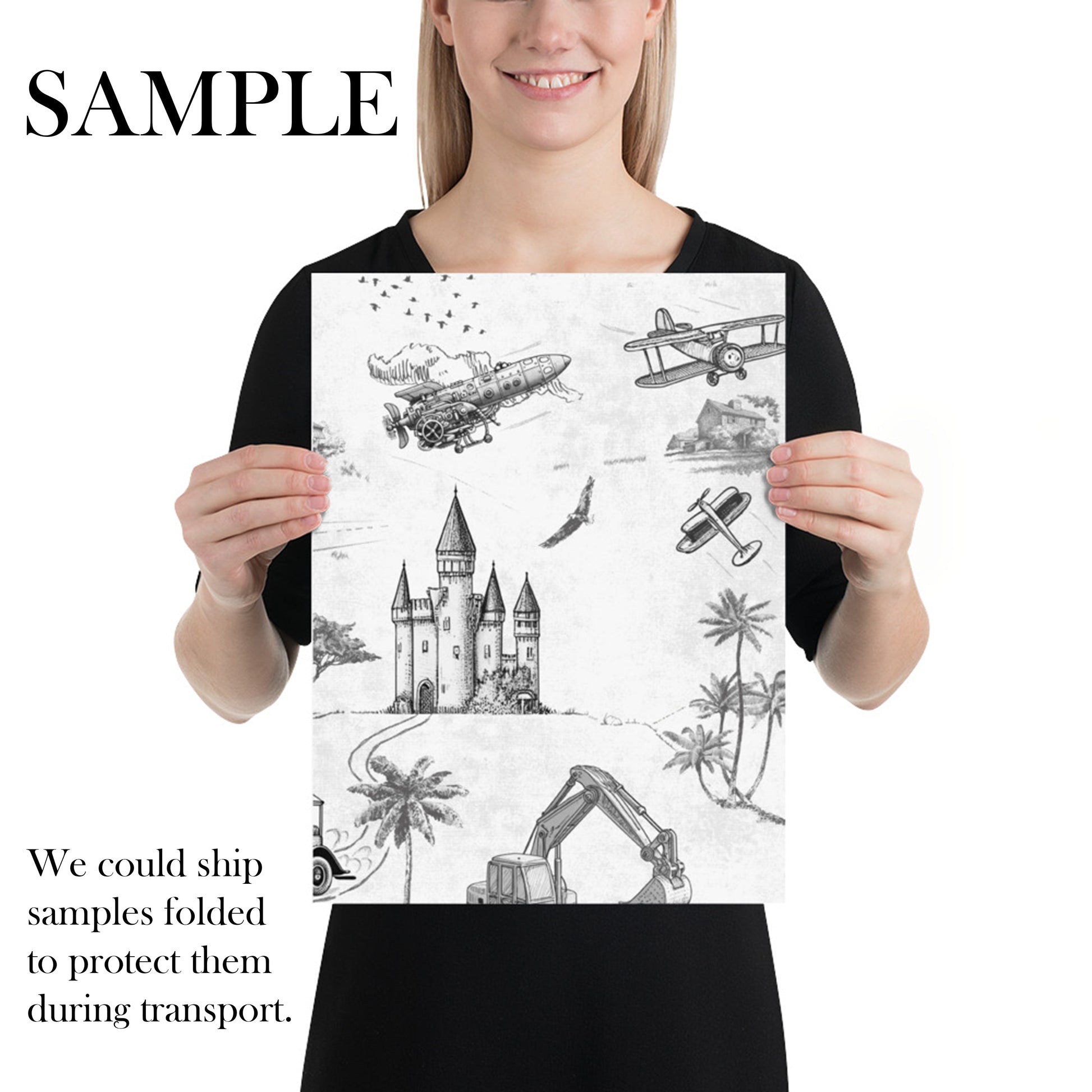 Crafted from high-quality, eco-friendly materials, our wallpaper provides an artistic statement and a commitment to sustainability. The detailed artwork features scenes, from soaring biplanes and daring pterodactyls to robotic dinosaurs and classic cars, creating a playful yet sophisticated environment.