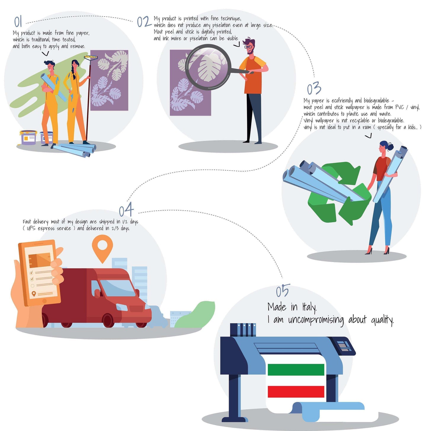 - 每张纸都是手工印刷的,以确保质量和美观。